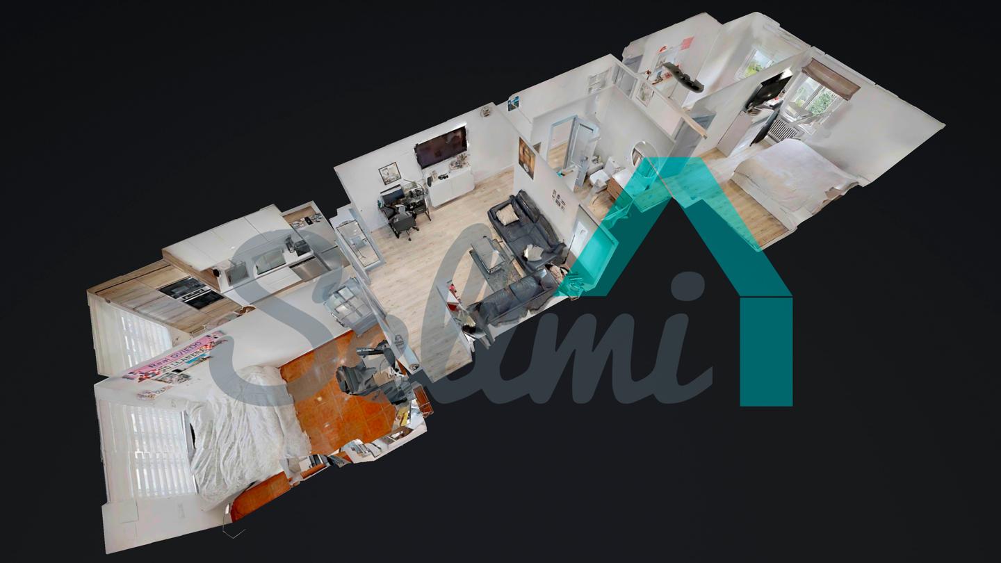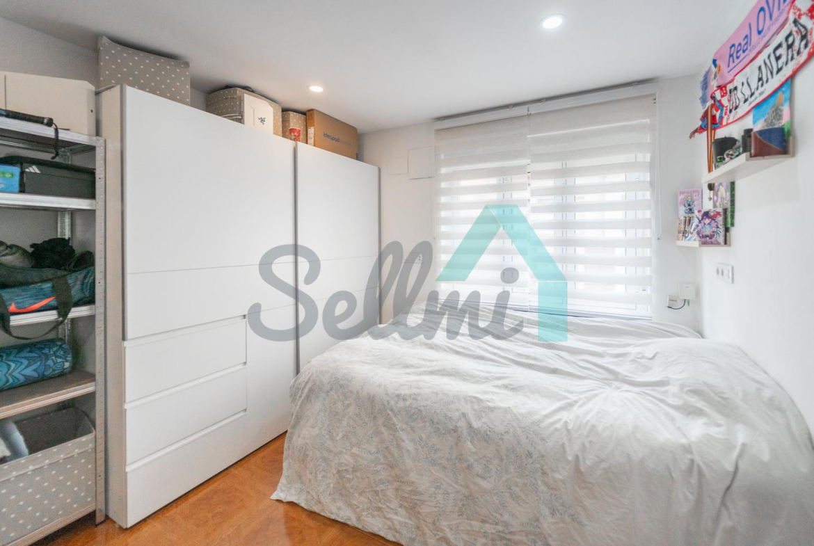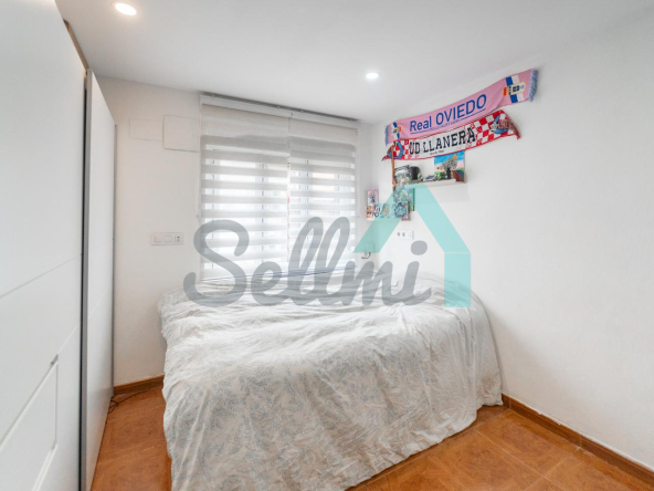 Piso en venta en Posada de Llanera (Asturias), junto al Estadio Pepe Quimaran. Se encuentra en la cuarta planta de un edificio construido en 1971, sin ascensor. Es totalmente exterior, con orientación suroeste y noreste.