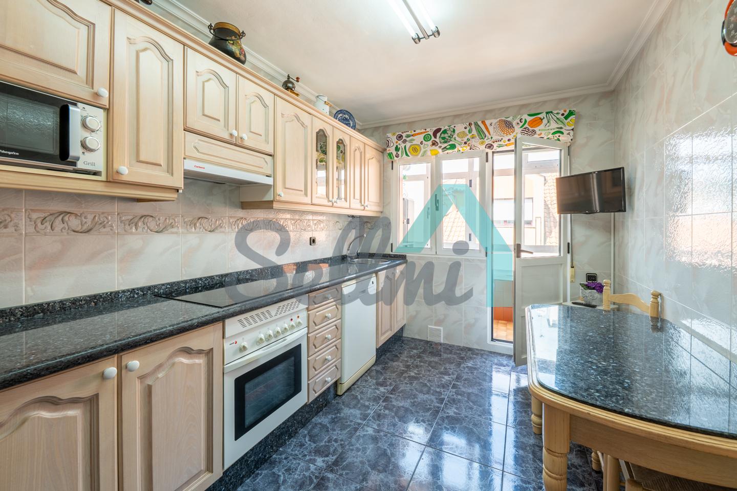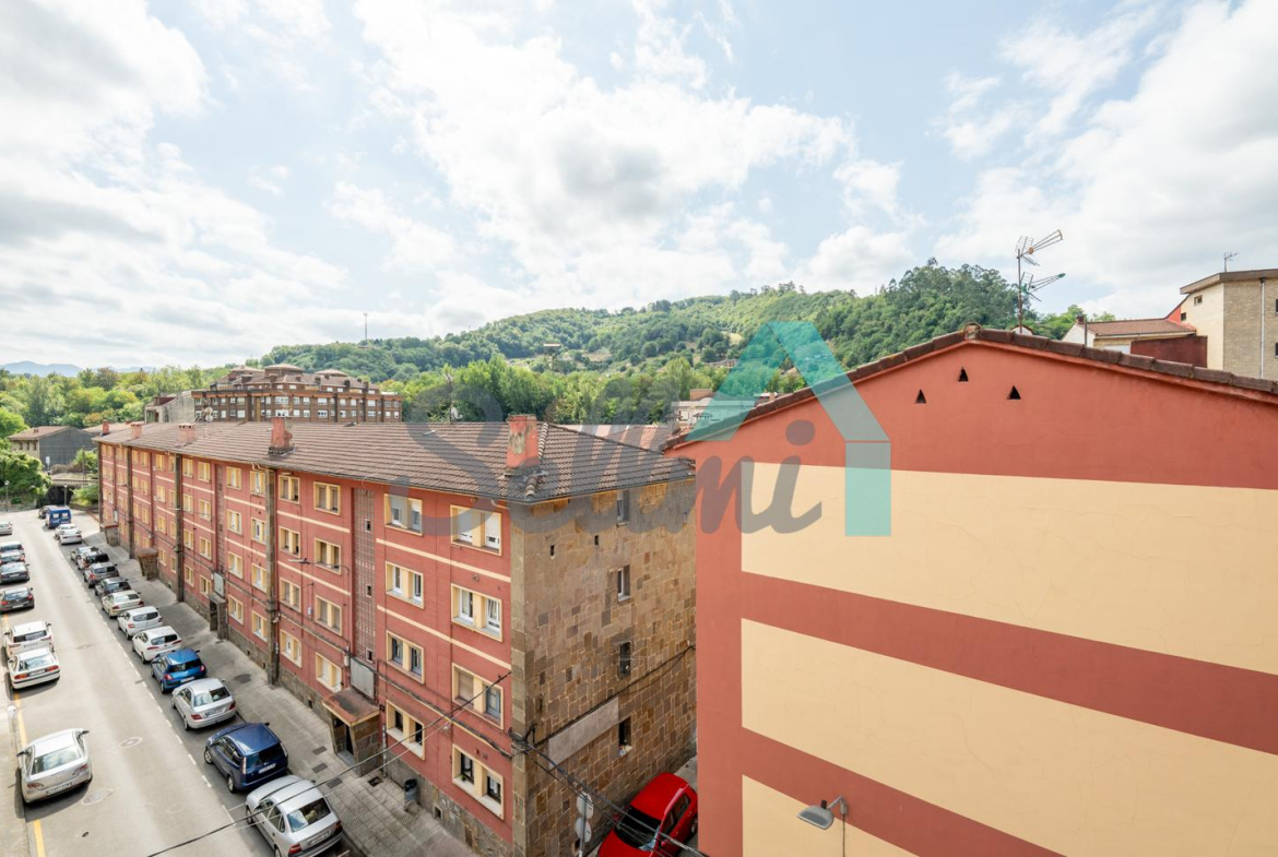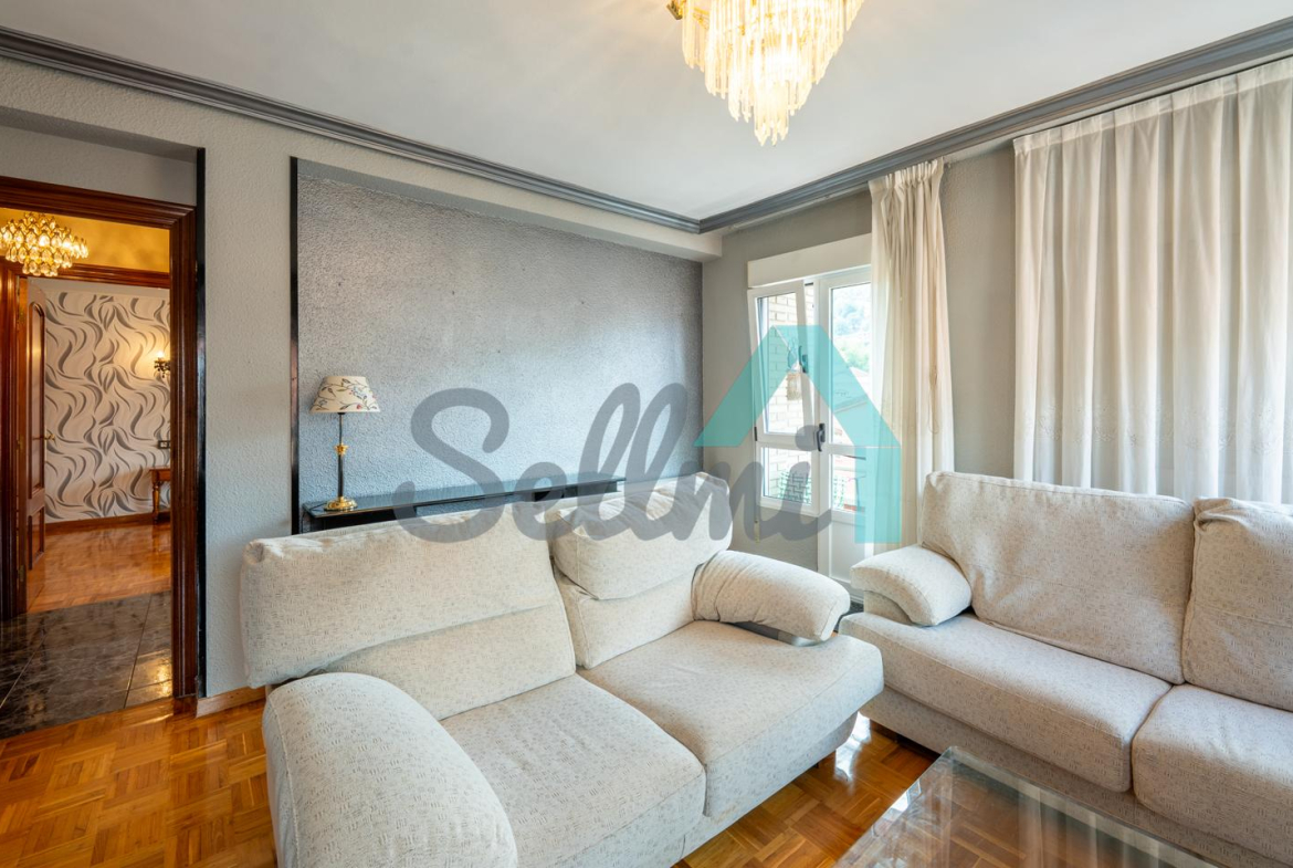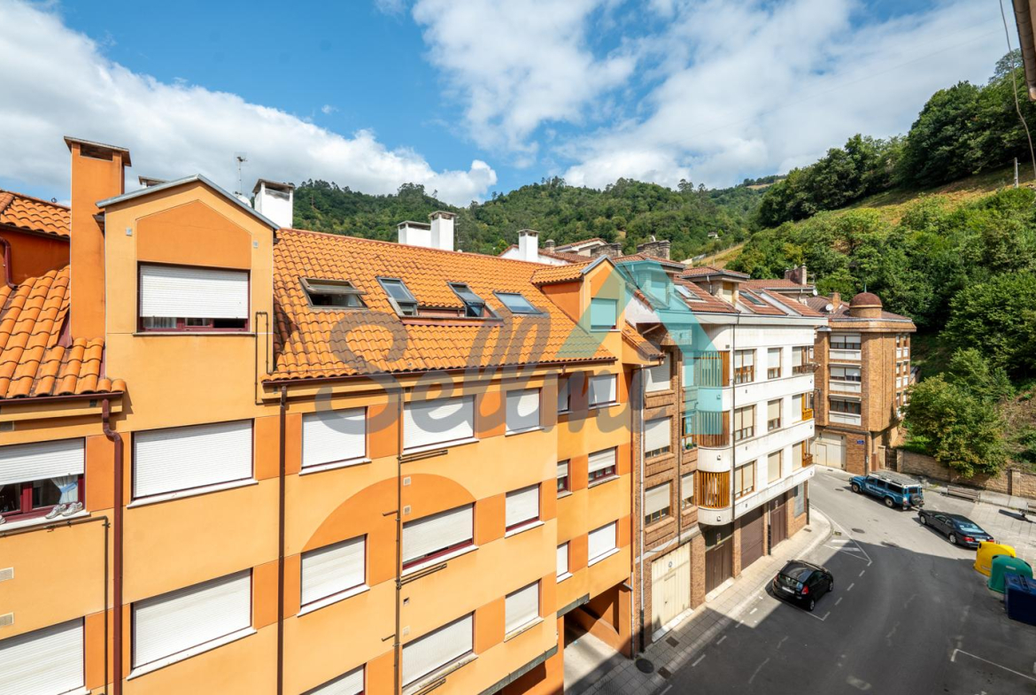 Piso en venta situado en Sotrondio (San Martín del Rey Aurelio). Se encuentra en la cuarta planta de un edificio construido en 1982, sin barreras arquitectónicas y que cuenta con ascensor (portal reformado). Es totalmente exterior (excepto baños) y muy luminoso, con orientación este y oeste.