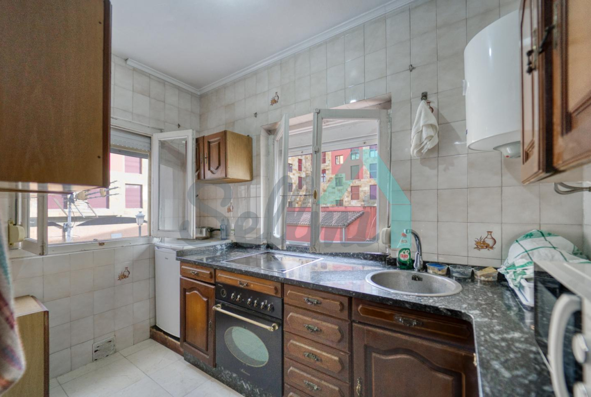Dispone de suelos de parquet y gres, balcones, ventanas de PVC con doble acristalamiento (exteriores) y de madera antiguas (interiores), calefacción individual eléctrica, etc.