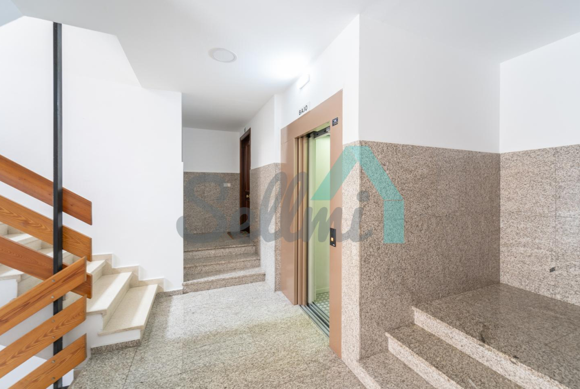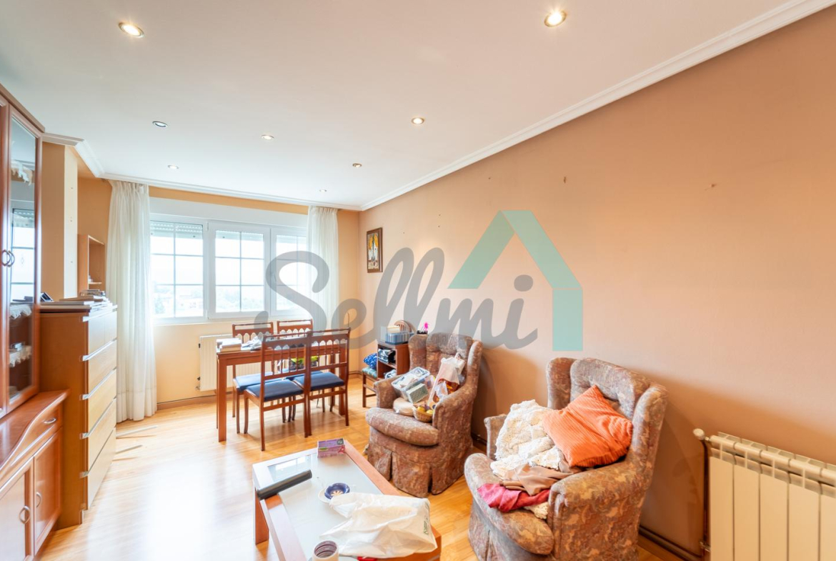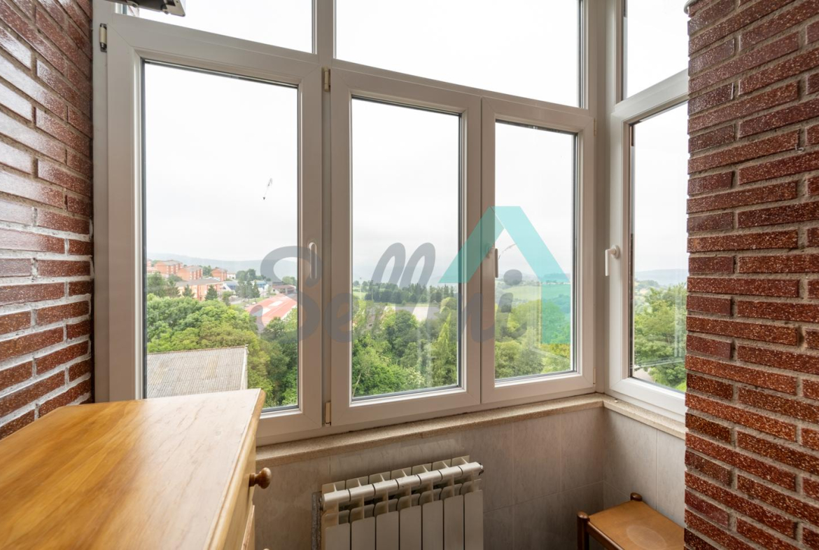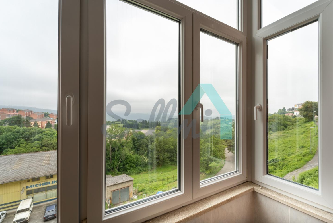 Piso en venta situado en la calle Severo Ochoa, en Tineo. Se ubica en la entreplanta (aunque con mucha altura) de un edificio construido en 1992 y que cuenta con ascensor. Es exterior y muy luminoso, con orientación sur.