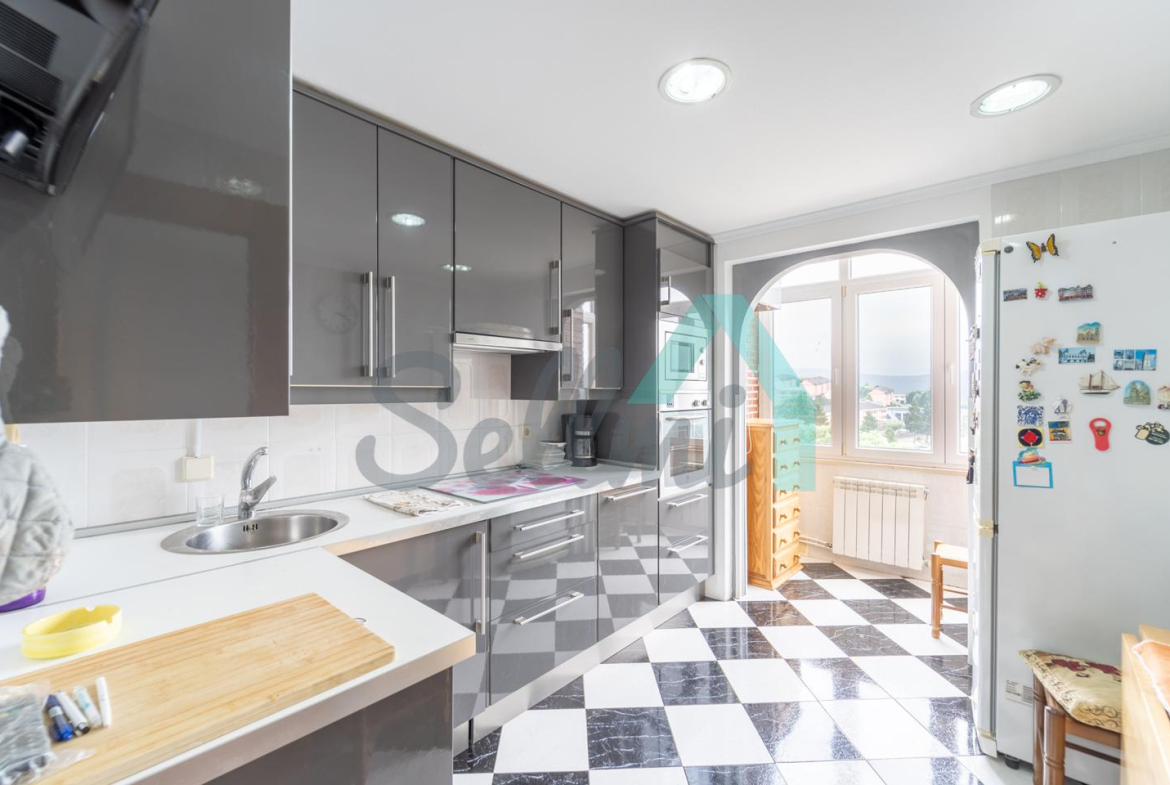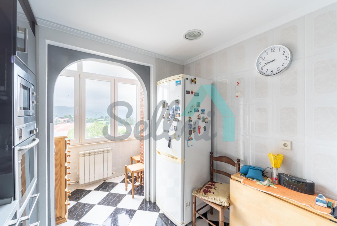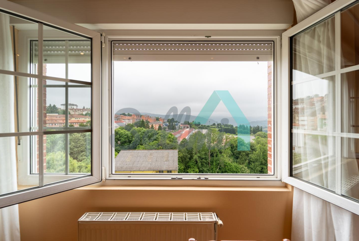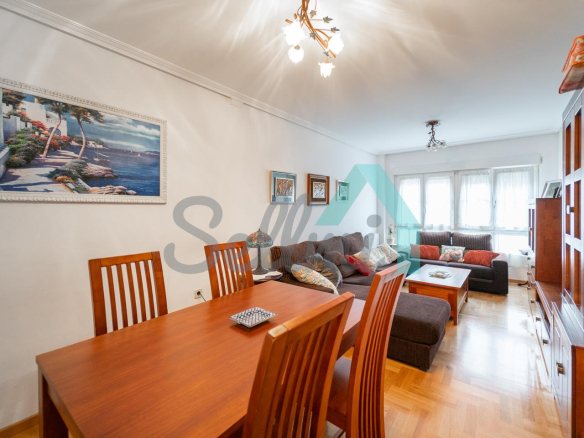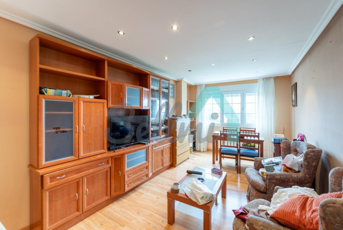 Piso en venta situado en la calle Severo Ochoa, en Tineo. Se ubica en la entreplanta (aunque con mucha altura) de un edificio construido en 1992 y que cuenta con ascensor. Es exterior y muy luminoso, con orientación sur.