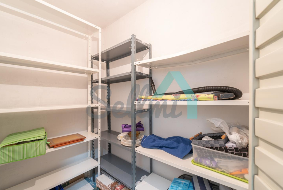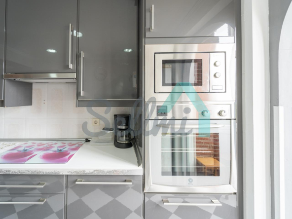 La vivienda, que se encuentra en perfecto estado, tiene una superficie construida de 56 m² distribuidos en hall de entrada, salón comedor, cocina amueblada y equipada, despensa, una habitación y un baño completo. Dos trasteros incluidos en el precio, uno de 2,60 m2 y otro de 13 m2 con ventana (los dos están situados en la misma planta que el piso).