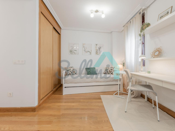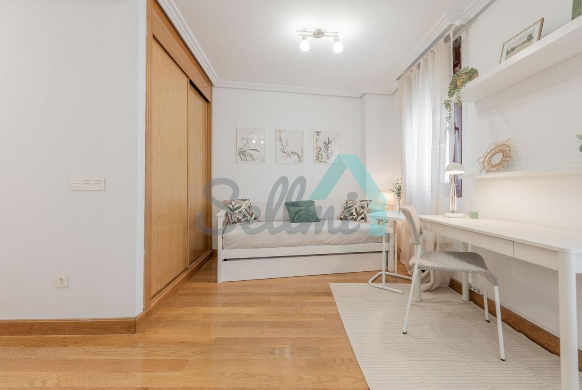 Dispone de calefacción individual eléctrica, ventanas de doble acristalamiento, suelos de parquet y gres, armarios empotrados, puerta de seguridad, videoportero, etc. Es interior, con orientación noroeste.