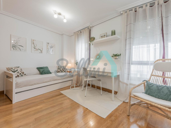 Se alquila amueblada y dispone de calefacción central, armarios empotrados, suelos de tarima y gres, ventanas de doble acristalamiento, puerta de seguridad, etc.