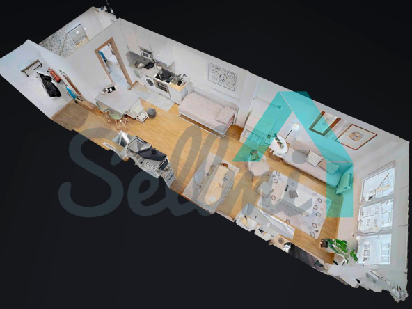 La vivienda, que se encuentra en perfecto estado, tiene una superficie construida de 49 m² distribuidos en hall de entrada, salón/dormitorio, cocina amueblada y equipada y un baño completo.
