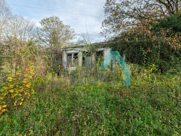 La parcela, que tiene una superficie 5.413 m², está cerrada con muro de bloque de unos tres metros de altura y cuenta con dos portones de acceso grandes y una puerta. Cuenta con suministros de luz y agua, aunque actualmente están dados de baja.