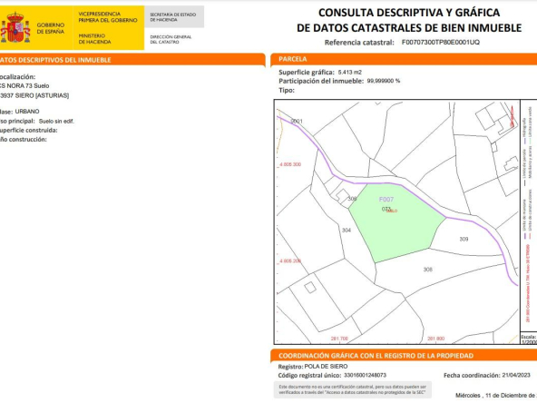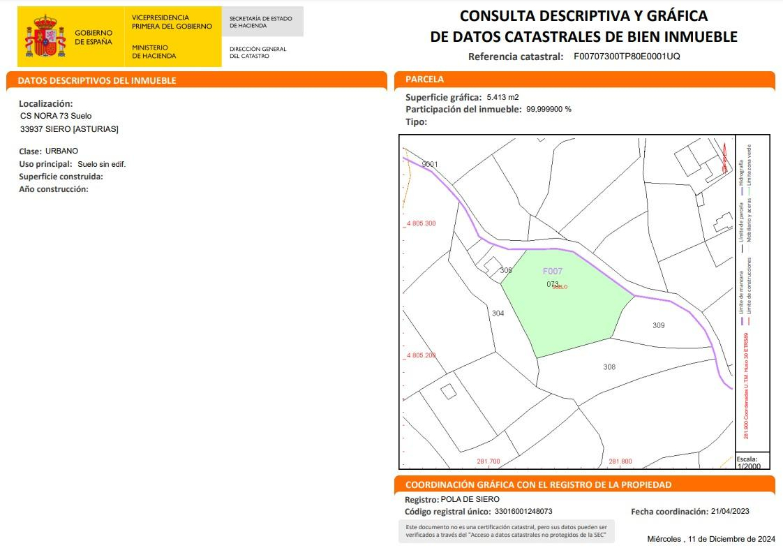 Parcela edificable en venta en Nora, Siero (Asturias, España).