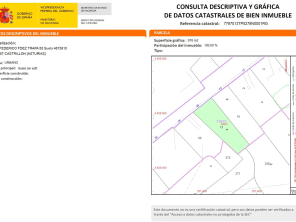 Superficie parcela: 978 m2.